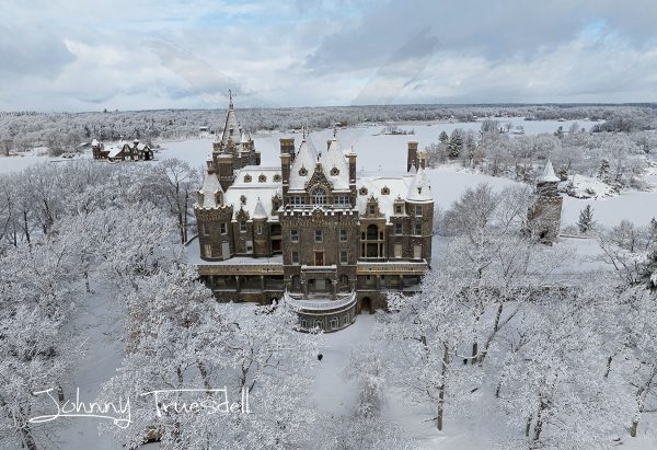 Heavy Snowfall At Boldt Castle – Wider View – (2-04-2025)